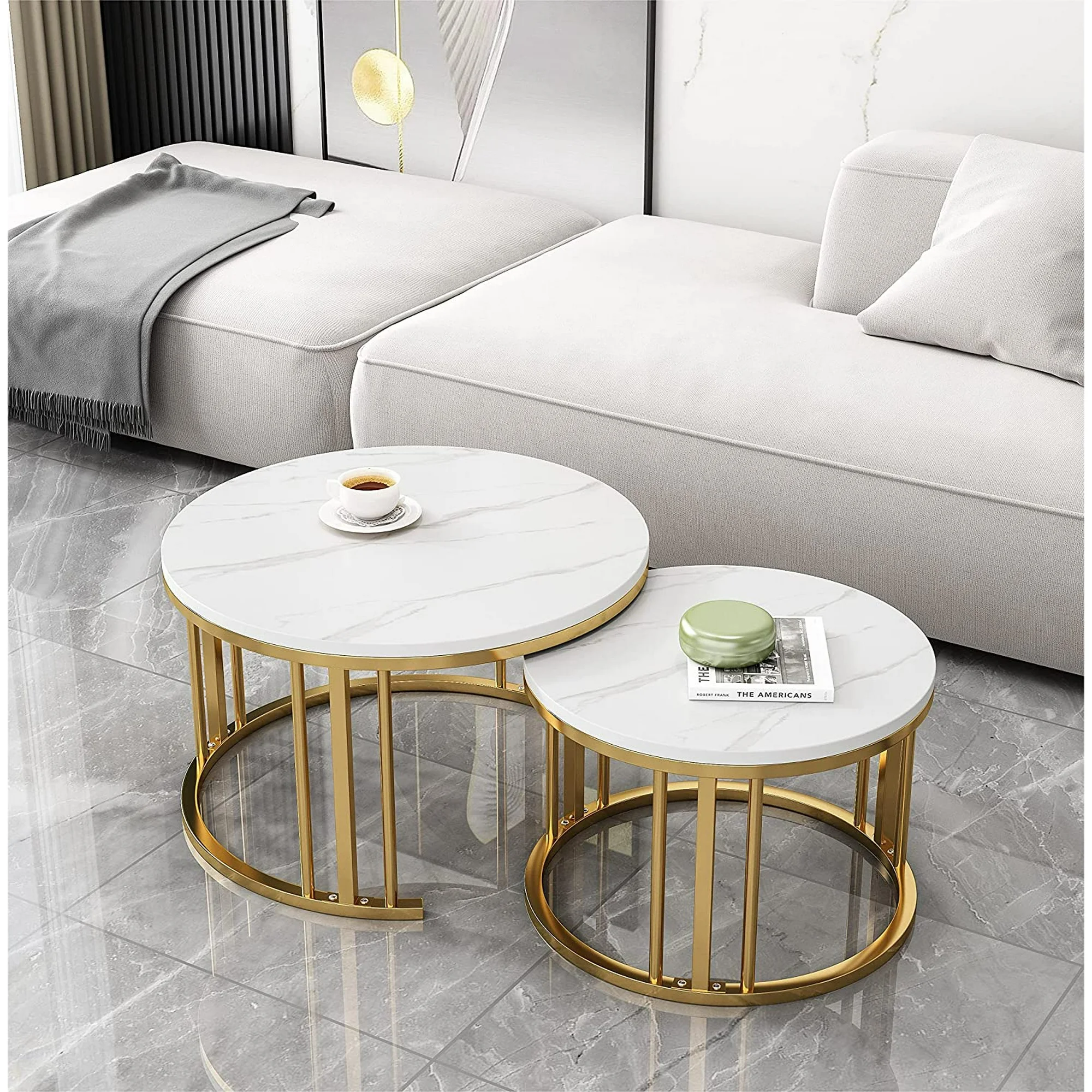 Simple Luxurious Style: The combination of faux marble tabletop and gold open nesting design makes the coffee table visually beautiful and elegant.Fits well with your personal taste and interior decor. The simple and luxurious appearance is suitable for different scenes, and can be used as a sofa table,